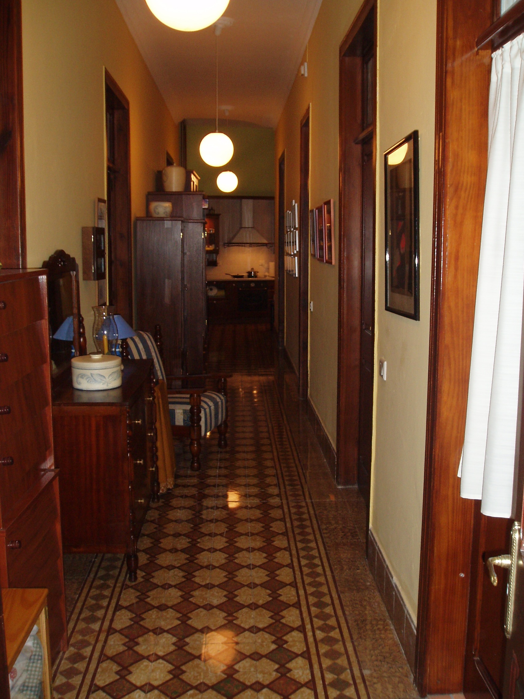 • Flat size 200 m² in the ground floor, everything reconditioned with three different entrances, seven bedrooms, the Masterbedroom with wardrobe, two bathrooms, an italian kitchen, Patios, small storage, parking lot possible, you can use part of the house as office.